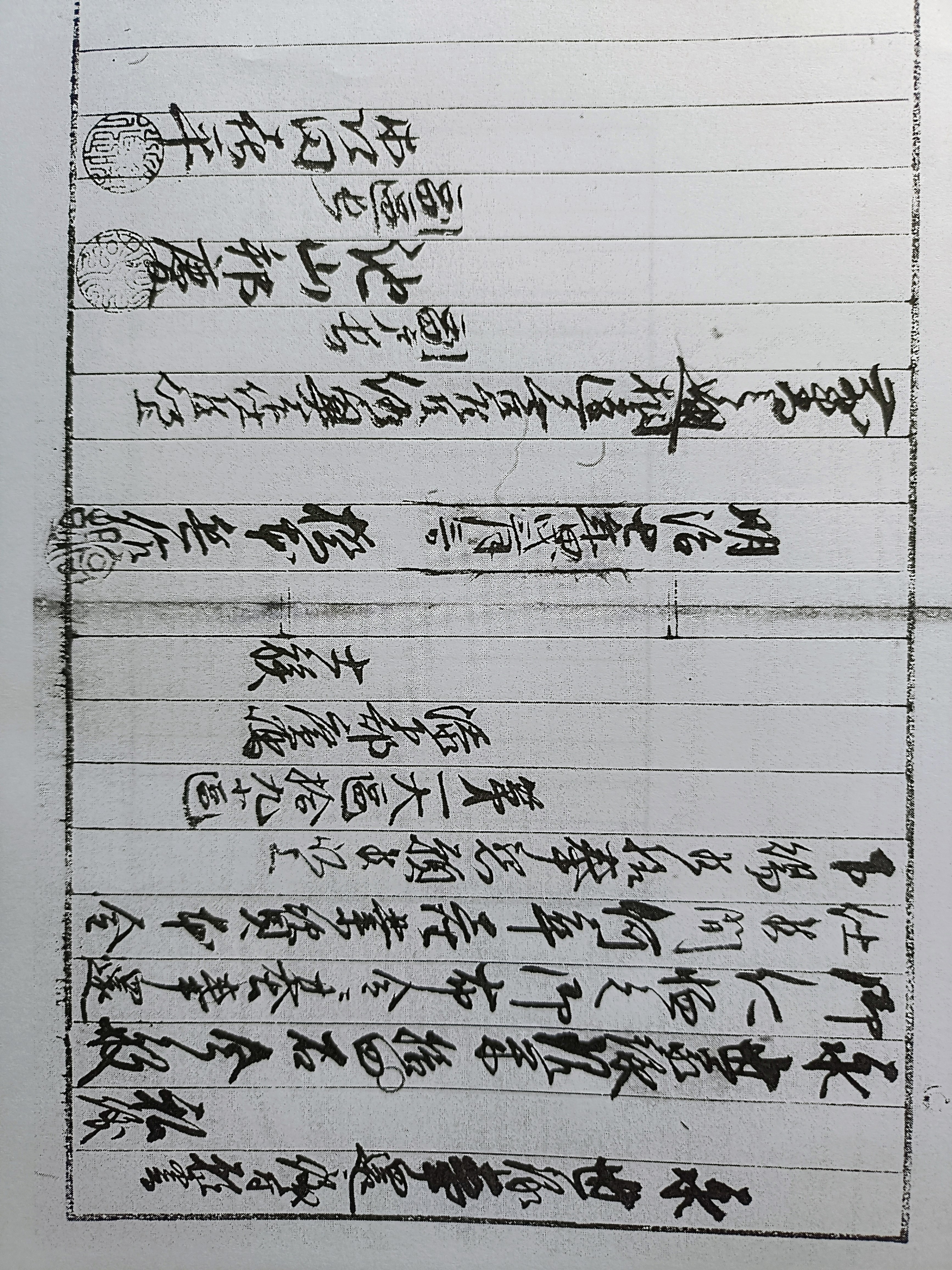 「…折紙副之、百疋弥次郎殿、卅疋壽全、廿疋兵部、廿疋源吉、廿疋弥四郎、五十疋中村殿、廿乃橋本弥六殿、以上…」(天正十年)