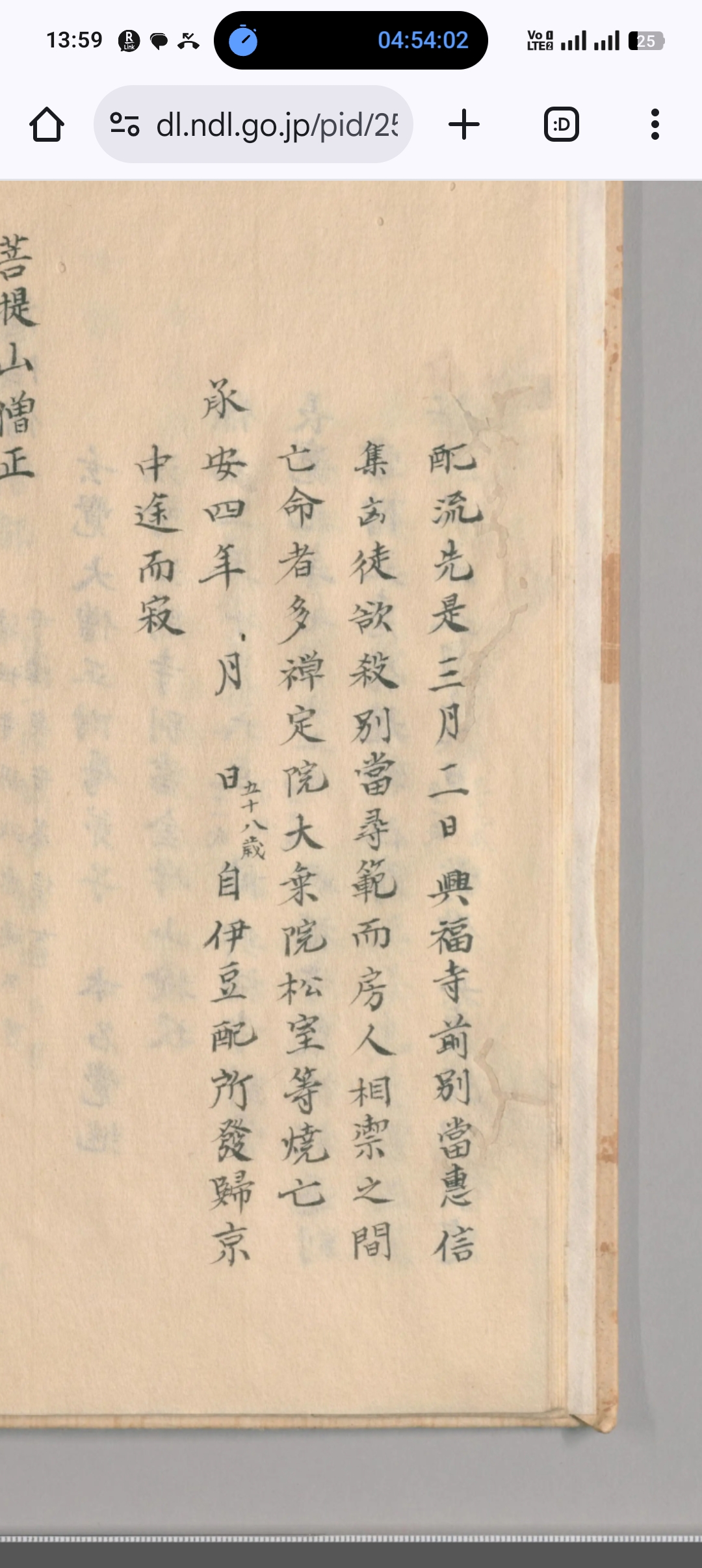 廿五日、信讀ノ仁王講在之、闕請始テ來ル間參懃了、同時退散以外嚴儀也、文珠咒勸進以下合十來廿六日自常如院問講不定觸了、題講衆廿五人、慈父卅三年也云と、